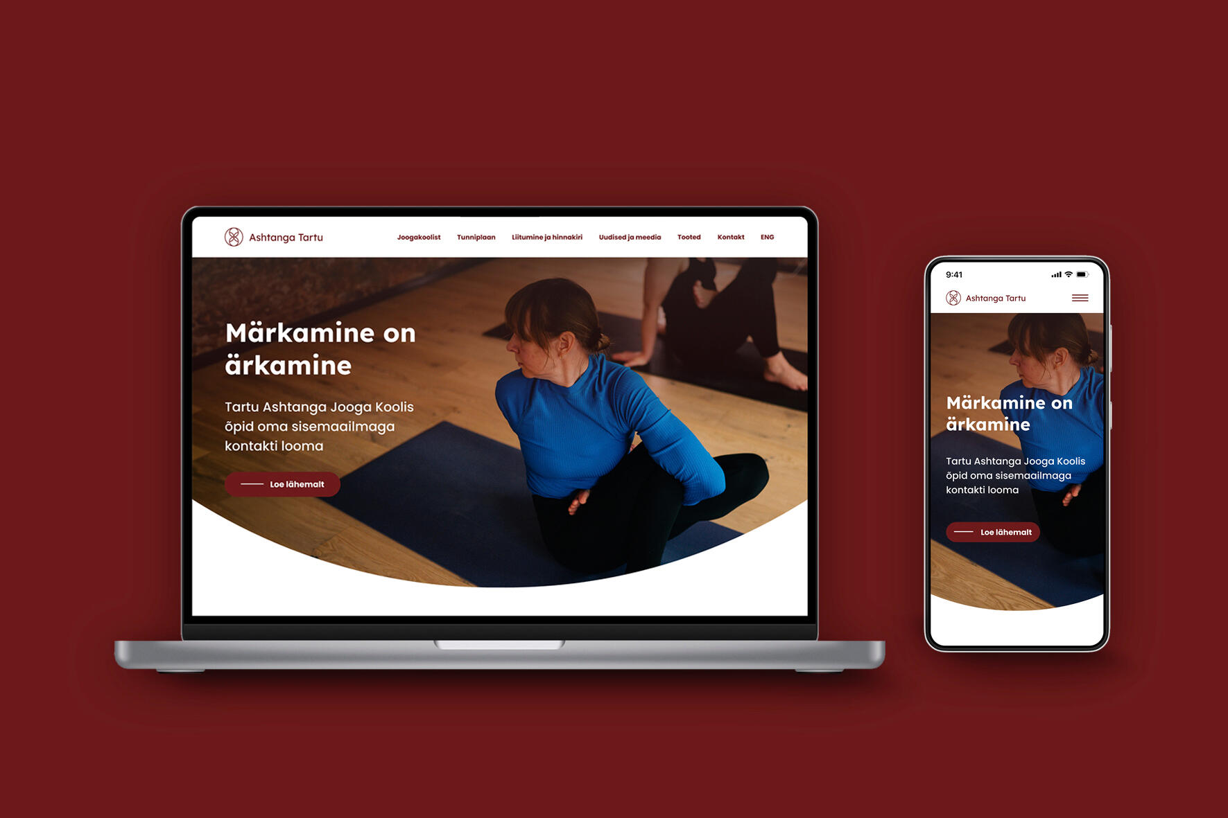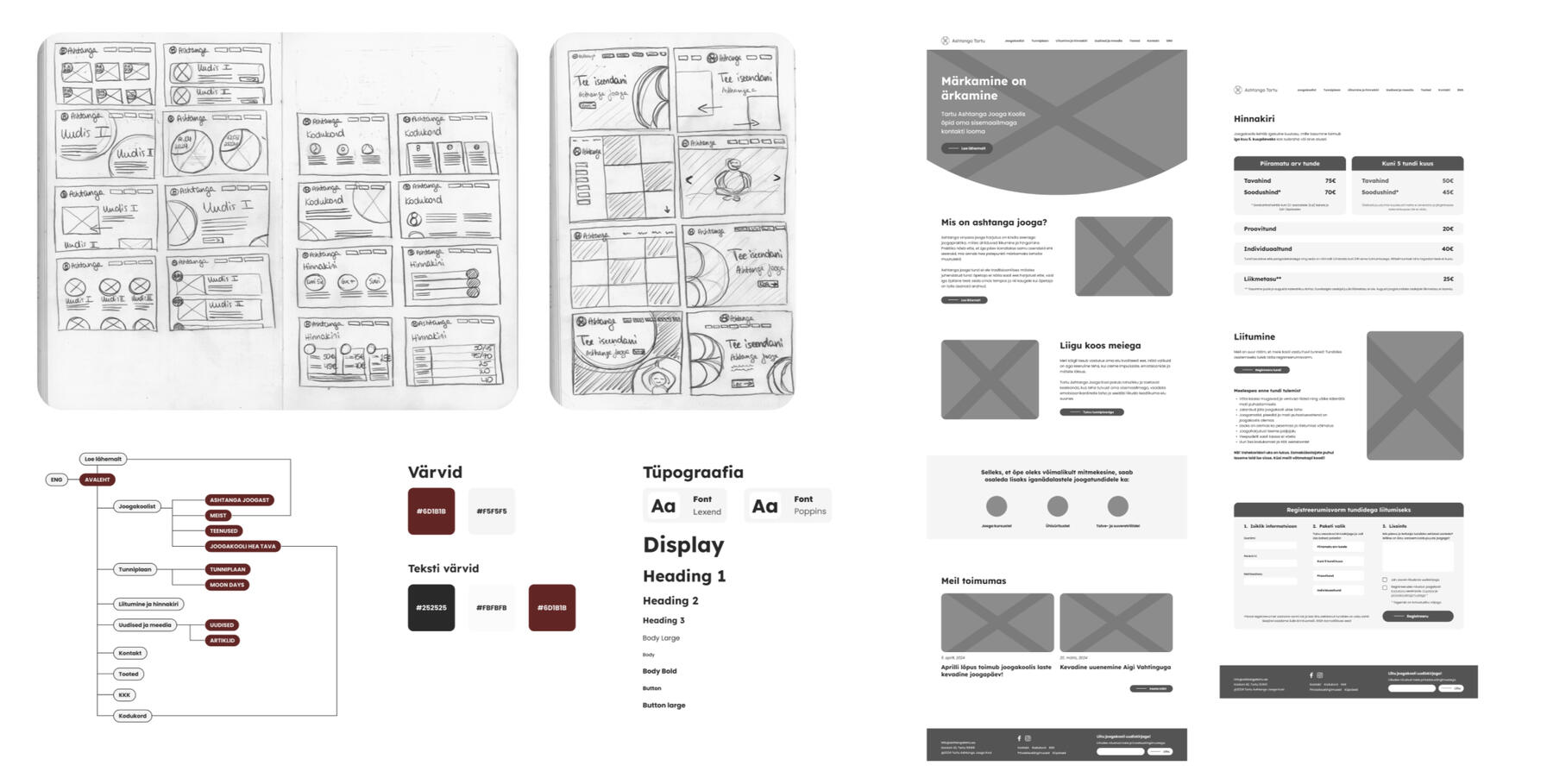 The aim was to develop a website design for Tartu Ashtanga Yoga School and enhance the website's overall usability and user-friendliness as well as to raise awareness about Ashtanga yoga, thereby fostering greater interest in this practice.The primary objective was to enhance both the school's overall image and the perception of its practice, all while ensuring alignment with the company’s identity and values throughout the development of the new website.The design process included me as a designer as well as my thesis supervisors and the team of Tartu Ashtanga Yoga School. The process entailed several tasks.