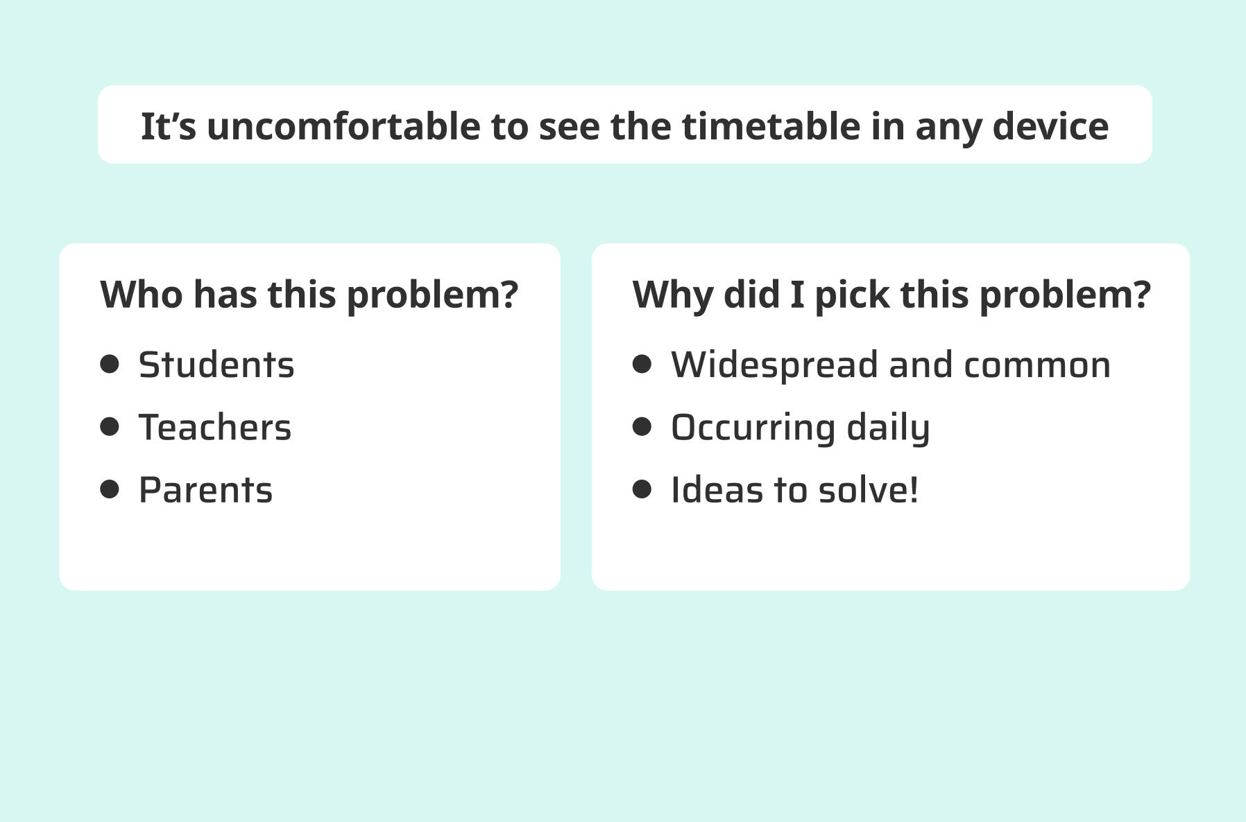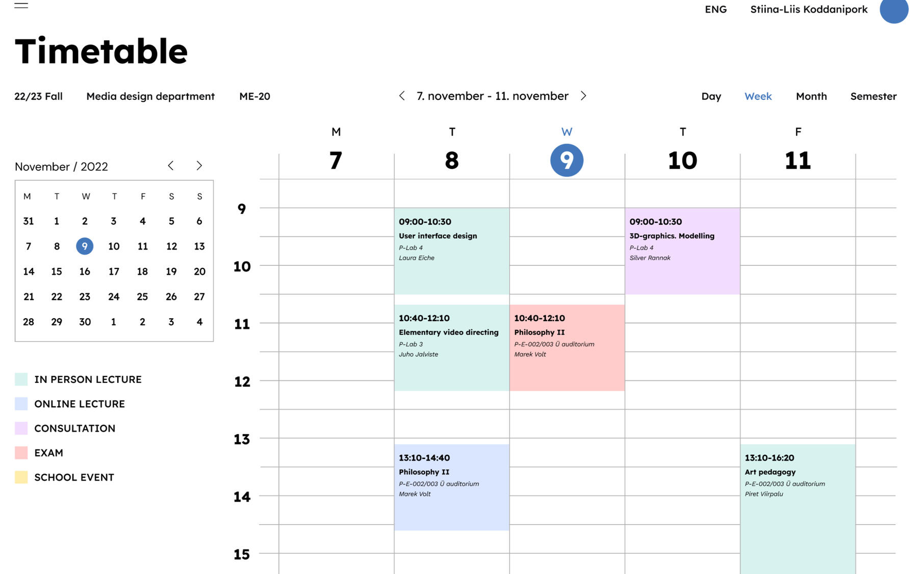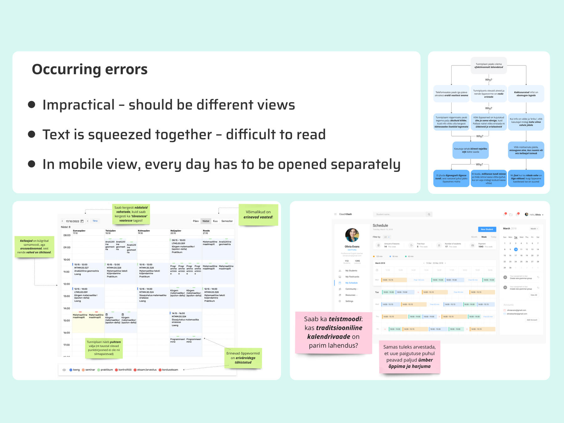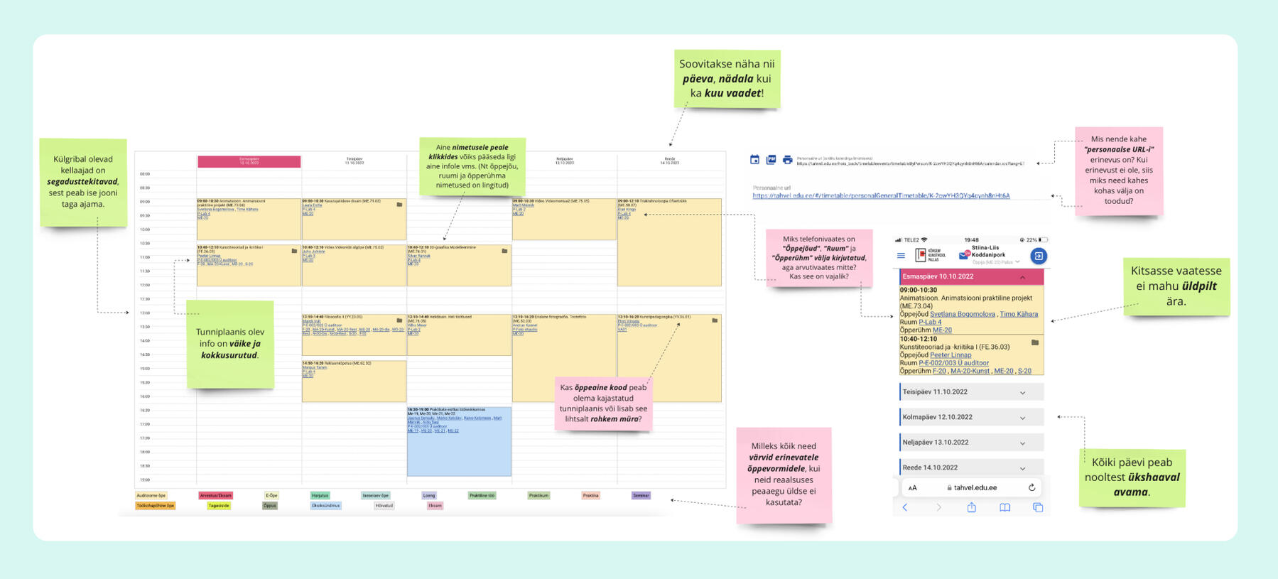 The UX/UI course began with analyzing the current Tahvel website with the whole class.Following that, it was time to individually select and define a specific problem. My choice was to redesign the existing timetable page.To deepen my comprehension of the daily challenges users encounter, I cultivated empathy by crafting user personas, followed by employing the 'How Might We' questioning technique.