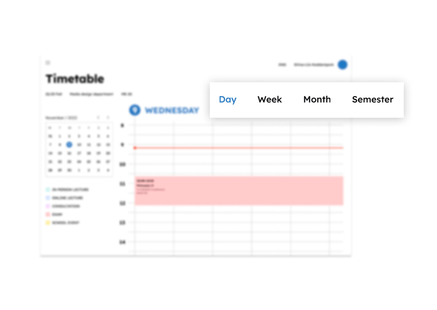 In my design, I emphasized the flexibility for users to select various viewing options, including daily, weekly, monthly, and even semester calendars. Furthermore, I addressed usability concerns specific to mobile devices, recognizing their prominence in users' daily routines.Moving forward with this design, potential next steps include enhancing and diversifying the available views, introducing a dark mode option to the current version, and implementing functionality for users to incorporate their own events or notes into the timetable.Throughout this project, I found myself becoming more interested in UX/UI design. Learning about how to create user-friendly experiences and interfaces really caught my attention. It made me want to learn more about the basics, methods, and creative parts of this field. This new interest not only made my project more exciting but also inspired me to keep learning more about UX/UI design.