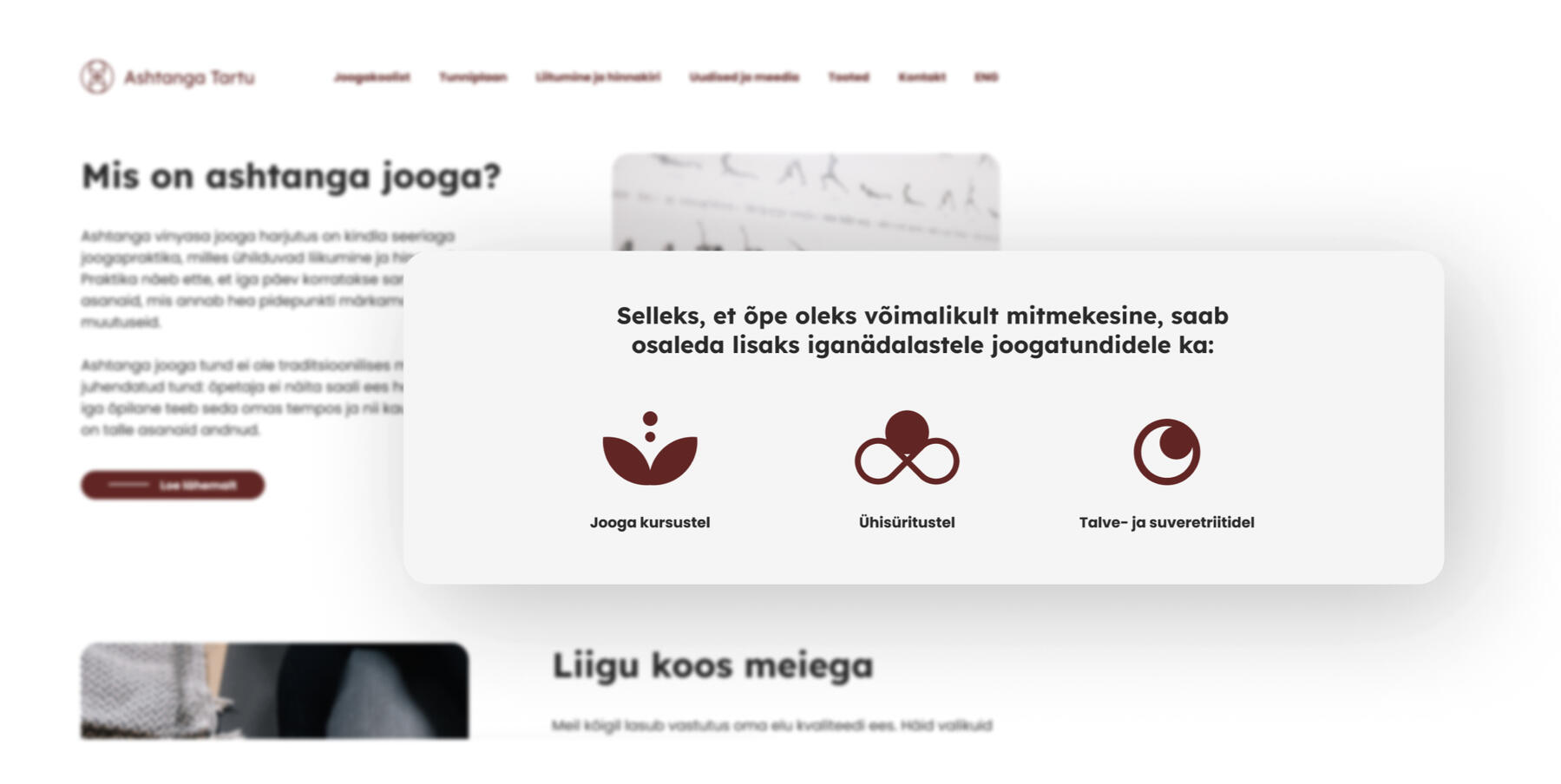 Tartu Ashtanga Yoga School needed a new improved website design for their existing students as well as potential new members. I decided to take on this project as my Bachelor's thesis work.